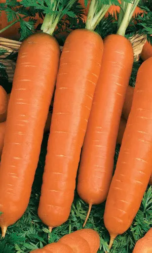 Проверено временем! 30 лет на рынке! Очень надежный, урожайный среднеспелый гибрид (135 дней после всходов) нантского сортотипа. Корнеплоды среднего размера, однородные, цилиндрические с тупым кончиком. Имеют привлекательный яркий оранжевый цвет, не ломаются и не растрескиваются. Мякоть очень нежная, сочная и сладкая. Обладает комплексной устойчивостью к альтернариозу, церкоспорозу и ямочной пятнистости корнеплода. Чемпион по хранению-хранится до мая следующего года. Используется для получения соков, употребления в свежем виде и для всех видов кулинарной переработки.